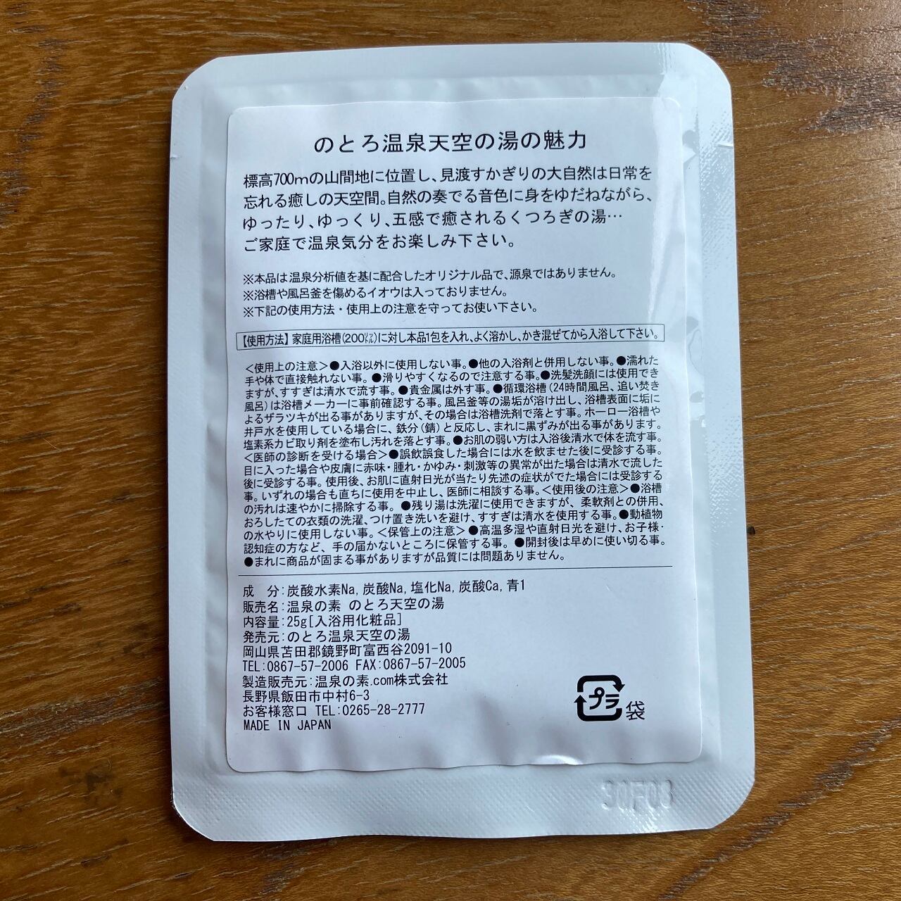 のとろ温泉天空の湯の成分表をもとに配合された【のとろ温泉公式】温泉の素です。